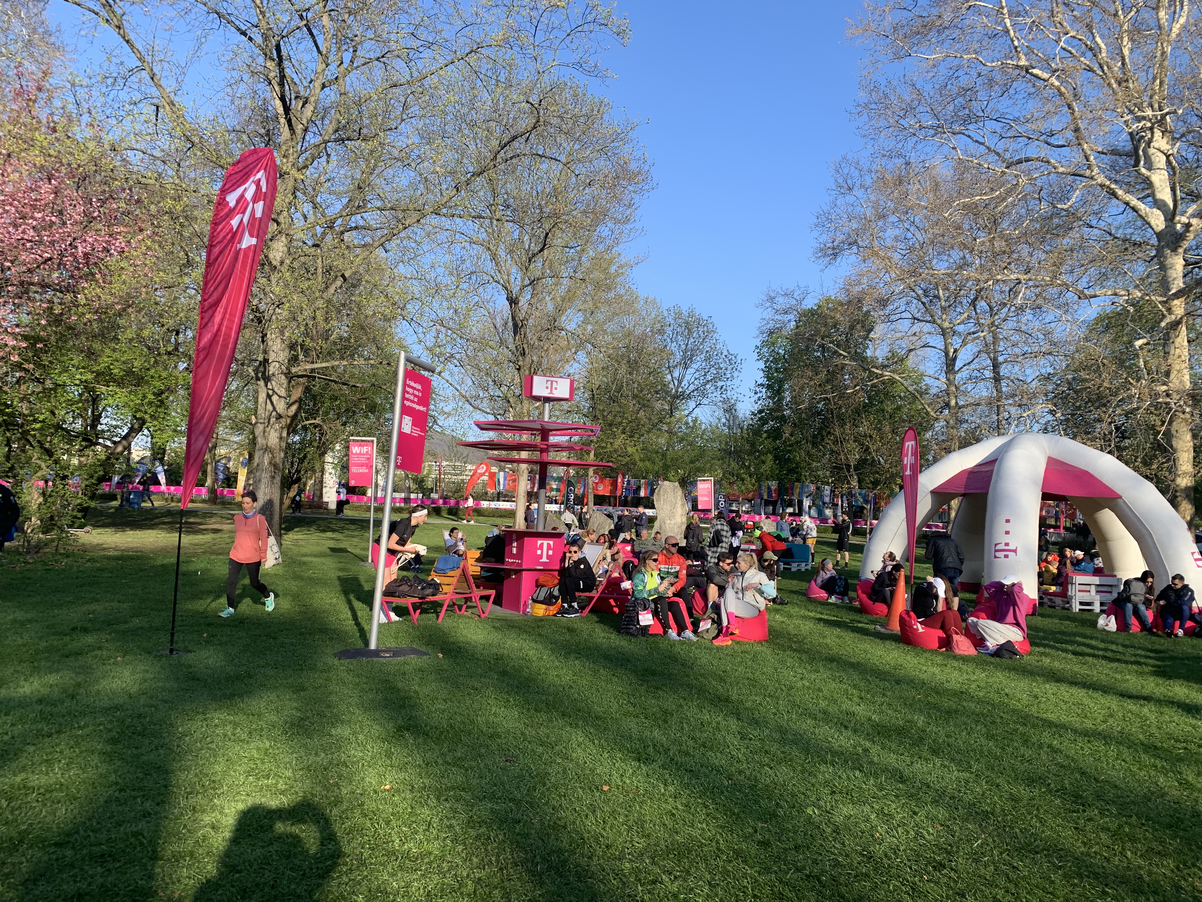 One major highlight was a lounge-style area sponsored by T-Mobile, complete with free Wi-Fi and power outlets. I was seriously impressed—this is a game-changer for supporters who often have to wait around at the start/finish area. While Margaret Island is centrally located, it’s still a bit of a walk from nearby cafes and hotels, so having a comfortable spot to recharge (literally and figuratively) was a thoughtful touch. For friends and family who didn’t want to trek back into the city or navigate public transport, it offered a perfect place to relax, stay connected, and avoid the dreaded low-battery panic.